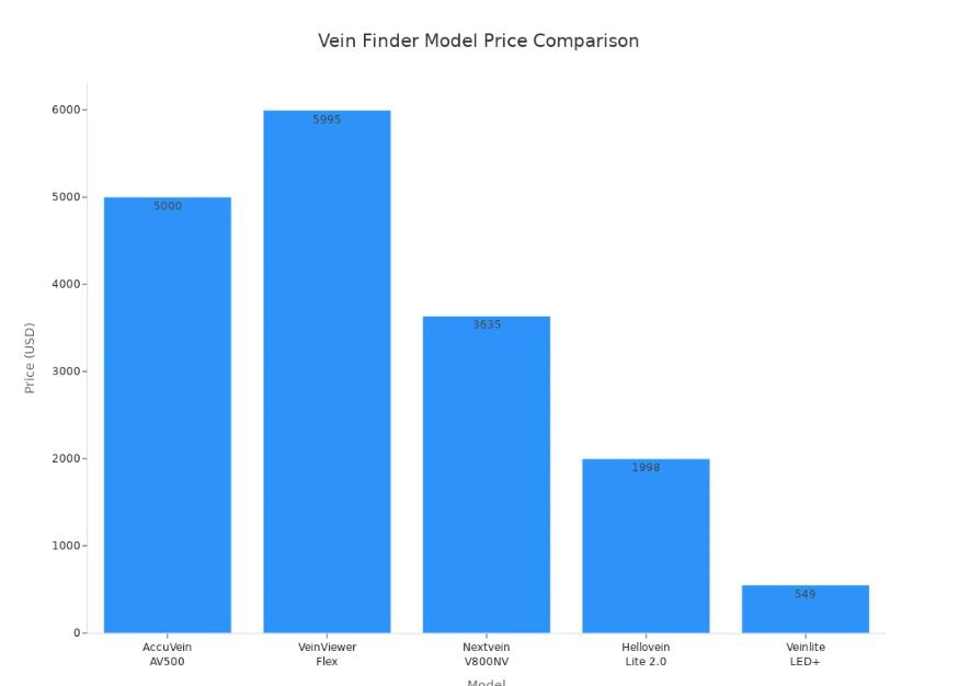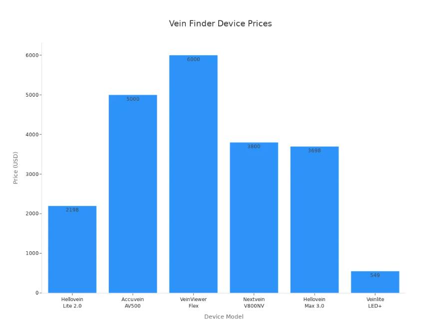 Vous souhaitez comparer les meilleurs appareils de localisation des veines ? Un tableau clair vous aidera à faire le meilleur choix pour votre clinique ou votre hôpital. Consultez le tableau ci-dessous pour découvrir les principales caractéristiques, les prix et les types de chaque appareil. Vous pourrez ainsi facilement identifier les différences.
