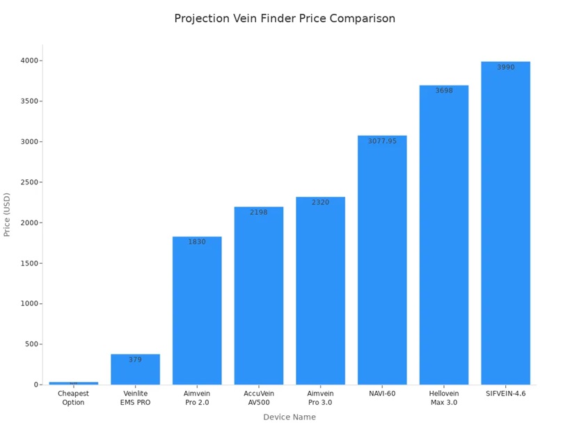 Vous devriez réfléchir à combien d'argent vous pouvez dépenser. Détecteur de veines par projection professionnelle Les prix varient considérablement. Certains modèles simples coûtent moins de 50 $. Les plus sophistiqués peuvent dépasser les 3 000 $. Le prix dépend des fonctionnalités de l'appareil. Si vous souhaitez des images haute définition ou une luminosité accrue, le prix sera plus élevé. Les étuis spéciaux et les options supplémentaires font également grimper le prix. Choisissez un appareil qui répond aux besoins de votre clinique. Ne payez pas pour des fonctionnalités que vous n'utiliserez pas.