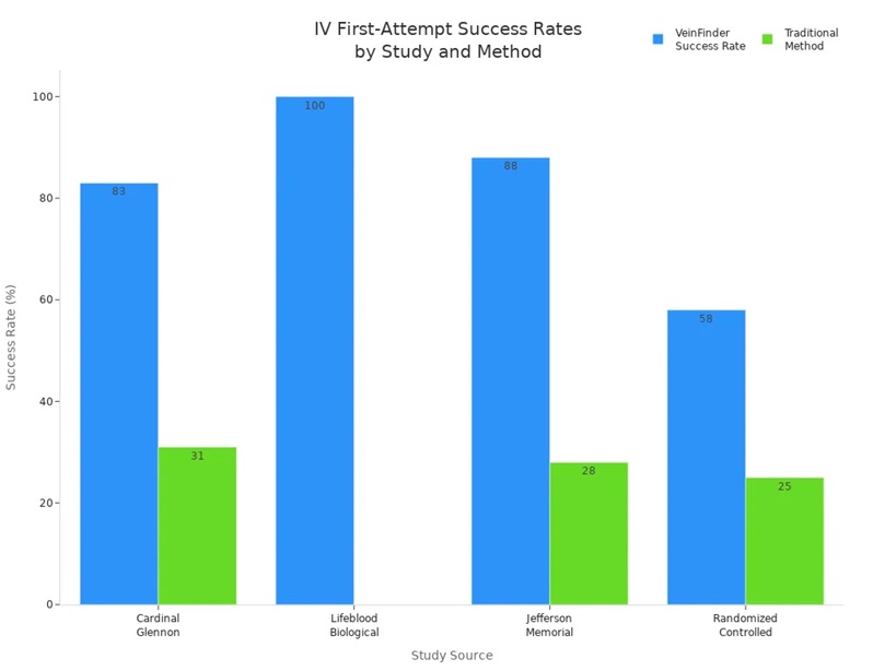 Vous souhaitez que vos patients se sentent à l'aise lors de la ponction veineuse pour le prélèvement sanguin. Un détecteur de veines vous aide à atteindre cet objectif. Cet appareil utilise la lumière pour visualiser les veines sous la peau, vous évitant ainsi de les palper. Cela réduit la douleur et le stress. De nombreux patients, notamment les enfants et les personnes âgées, sont moins anxieux lorsqu'un détecteur de veines infrarouge est utilisé. Vous pouvez constater la différence en matière de confort grâce aux chiffres suivants :