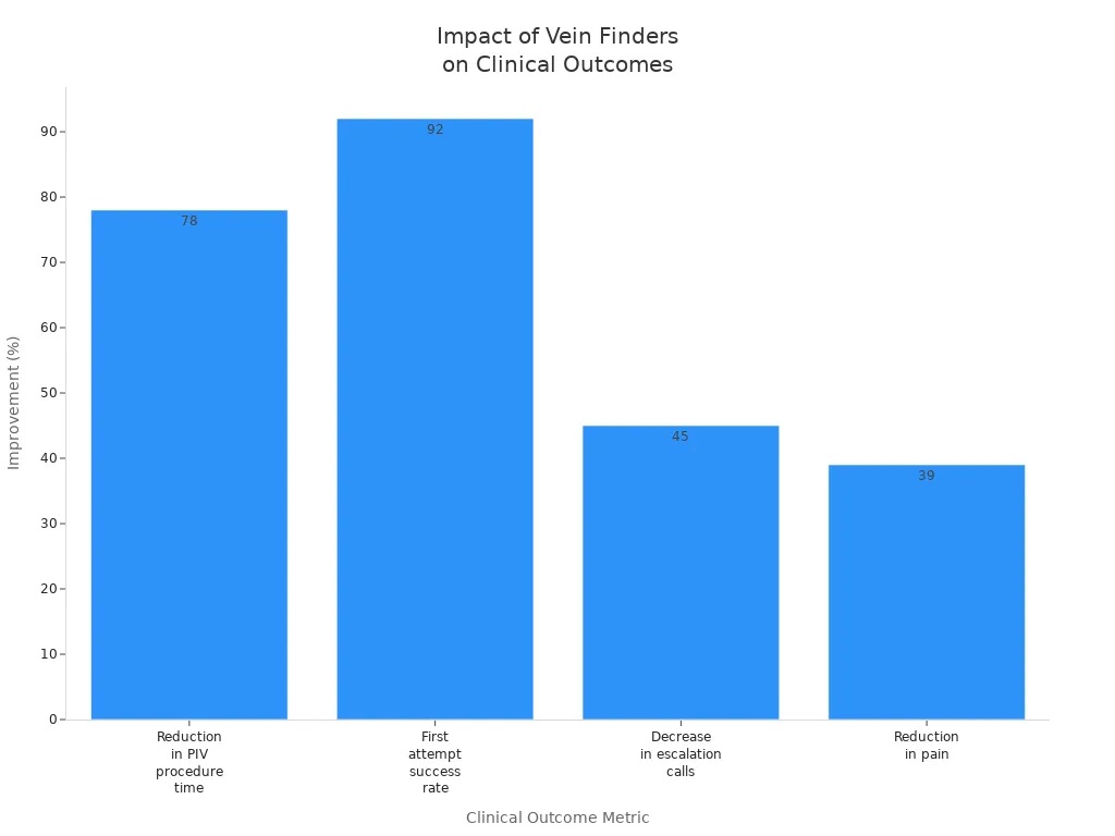 Les capacités d'imagerie en temps réel transforment votre approche de la ponction veineuse. Avec un localisateur de veines à l'hôpital Grâce à la projection en temps réel d'une cartographie des veines, vous visualisez précisément le point d'insertion de l'aiguille, ce qui réduit les approximations et minimise les tentatives infructueuses. Des études révèlent que l'imagerie en temps réel peut porter le taux de réussite dès la première tentative à 83 % et réduire la durée moyenne de l'intervention de 17 minutes à seulement 6,6 minutes. La satisfaction des patients s'en trouve également améliorée, témoignant d'une expérience plus confortable et plus efficace.
