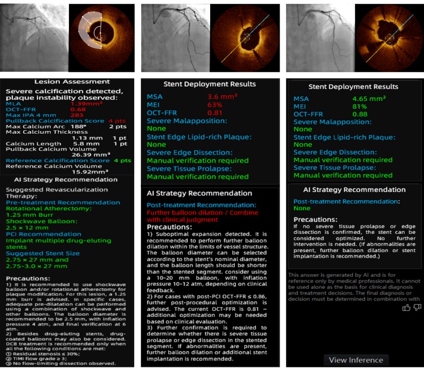 La tomographie par cohérence optique (OCT) joue un rôle central dans la planification et l'optimisation modernes des interventions coronaires percutanées (ICP), mais les études précédentes n'ont montré que accord inter-observateurs modérépour plusieurs résultats critiques de l'OCT, même parmi les médecins expérimentés (avec des coefficients de corrélation rapportés autour de 0,55–0,61Cette variabilité peut conduire à des stratégies de traitement incohérentes, notamment pour les lésions coronaires complexes.
