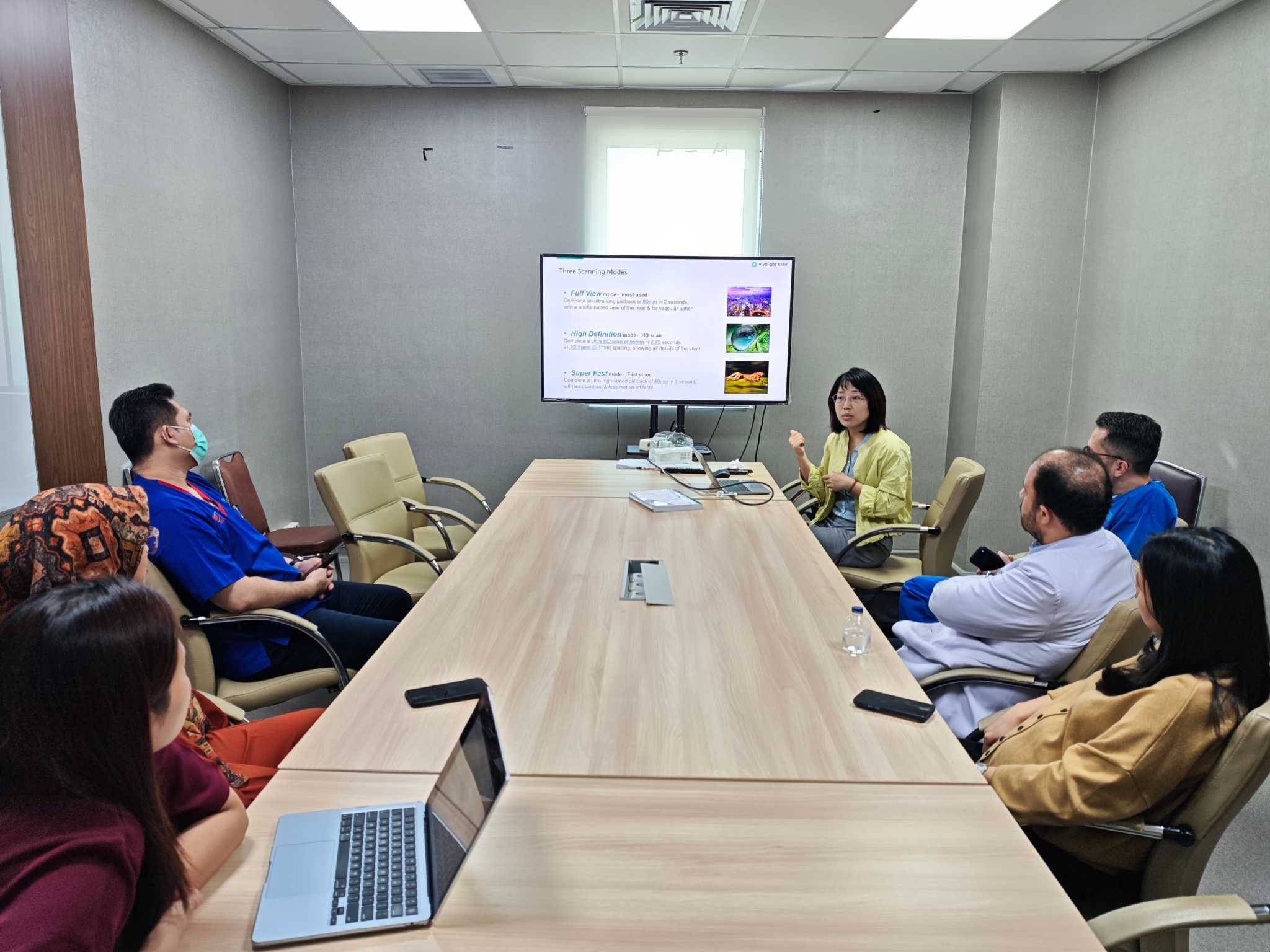 Prior to the first case, the hospital’s main operators received on-site training on the Vivolight Multimodal P80 OCT system. The session introduced the system’s distinctive multimodal capabilities within the PCI workflow, including plaque characterization, calcium analysis, and functional assessment support. The physicians showed particular interest in several multimodal features that go beyond conventional OCT imaging. The training was followed immediately by the hospital’s first clinical case using the system.